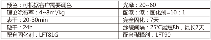 7、一般建議涂料厚度及用量:建議涂裝1~2道,干膜30-60μm。用量約4~8m2/kg。